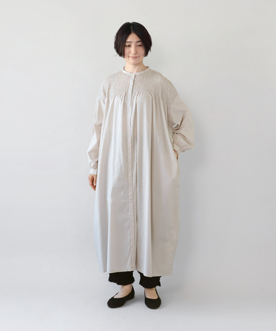 軽やかに纏う、コットンローンの優しい肌ざわりのシャーリングワンピース