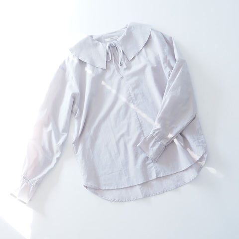 大きめのセーラーカラーが目を引く、ナチュラルフェミニンな印象のブラウスです。胸元はスキッパーデザインで、ほどよく開いたVネックにリボンをあしらっています。