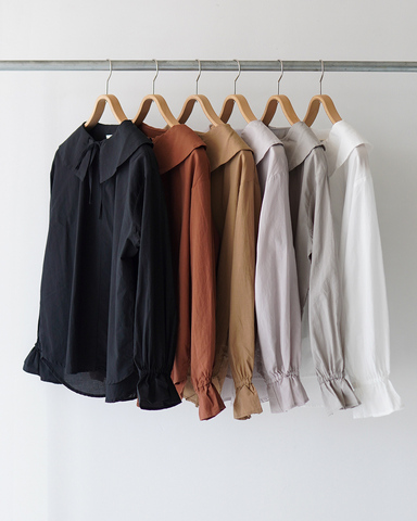 ドロップショルダーとゆったりとした袖幅は、肩の力を抜いたナチュラルな印象を与えつつ、女性らしいシルエットをキープ。袖口にはギャザーを寄せ、キャンディーのような愛らしいデザインをプラスしました。
