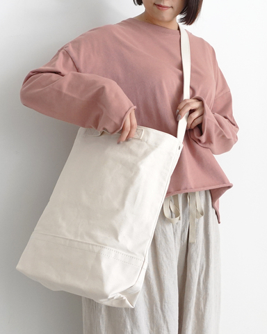 トートバッグとしても、斜めがけのショルダーバッグとしても使えるコットン100%のバッグ。