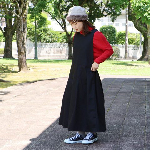 インナーや合わせる小物アイテムで、ジャンパースカートの雰囲気もガラリと変わるので、その日の気分や季節に合わせて、何通りもの着方を楽しめます。