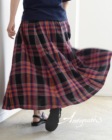 着て洗って長く着続けるほどクタっと自分の身体に馴染み雰囲気ある表情をに変わっていくチェックスカートをお楽しみください。