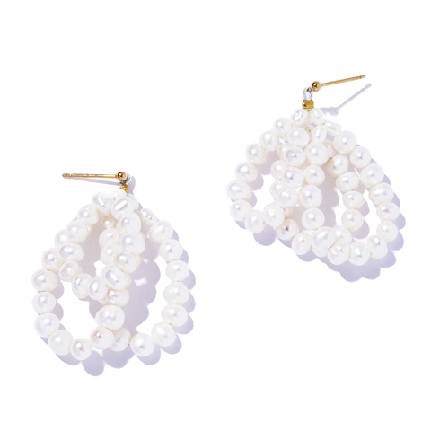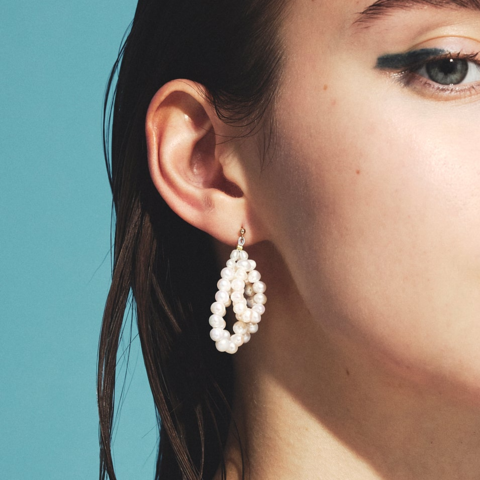 躍動的なシルエットで、顔周りに個性を叶えるパールピアス。