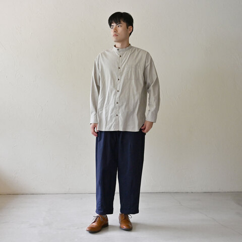 sisamユニセックスシリーズ定番のスタンドカラーシャツ。