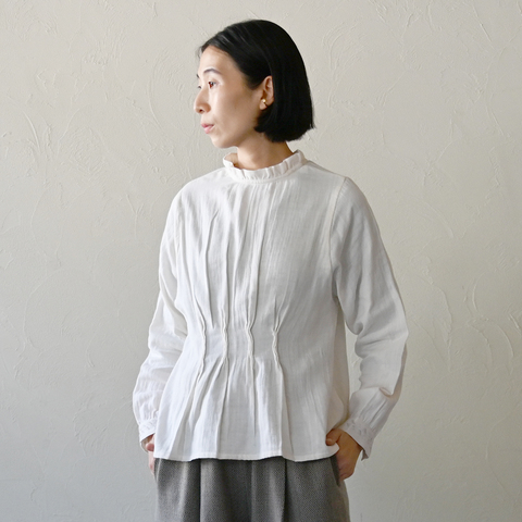 シルエットにもメリハリが生まれ、ガーゼ生地の柔らかさに華やかな印象が加わります。