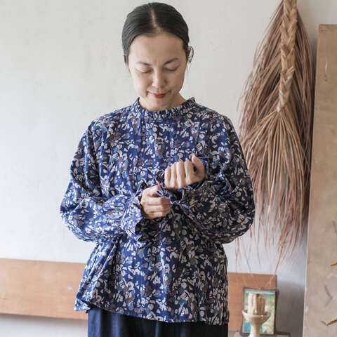 肩から二本ずつ入った大きなタックも、このブラウスに動きを付けてくれる大事なポイントです。