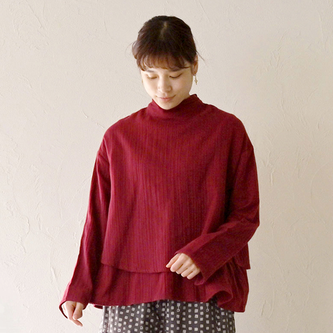 凛とした印象のスタンドカラーと、生地の重なりが魅力的な一枚に仕上がりました。