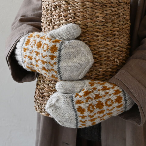 sisam|手編みのクリスマスギフトB【ミトン・リストウォーマー】【柄物】【ちくちくしない手袋】