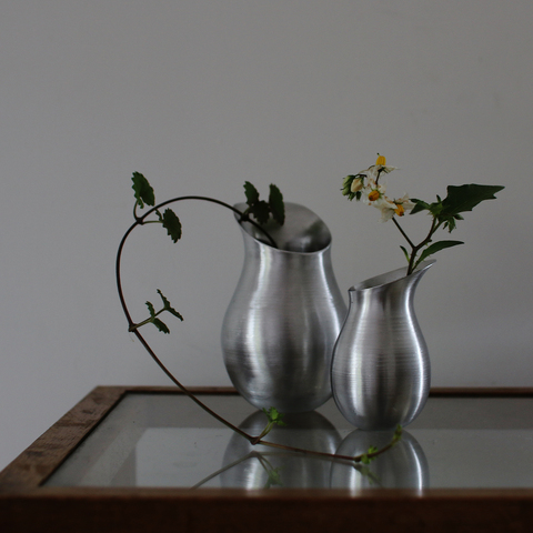 水やりにちょうど良いアルミの水差し/シルバー ハンドメイド フラワーベース