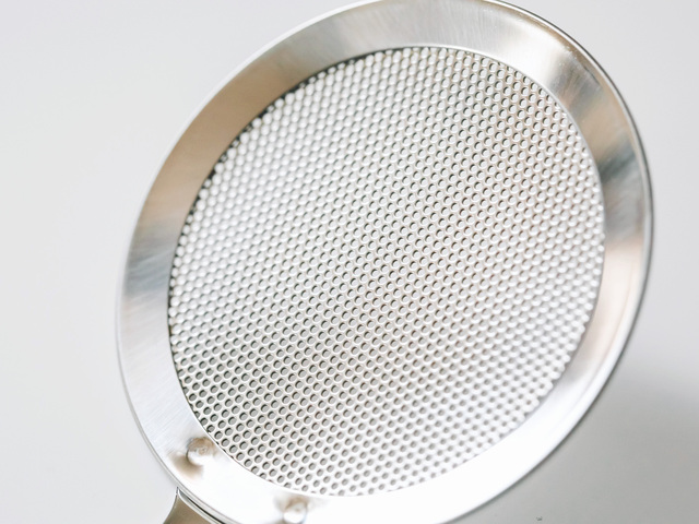 家事問屋の「あくとり」は、パンチング加工のステンレス製。目詰まりしにくく、さっとあくをすくえて、洗うのも簡単。あくとり作業のストレスを、ぐっと減らしてくれる道具です。