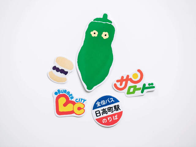 日高町を代表するお店やシンボルなどを5つのステッカーにしました。昔懐かしい場所から、今でもよく見かけるものまで、日高町と言えばのものばかりです。5枚セットになっているので、お気に入りの場所に貼るもよし、人に配るもよしです。