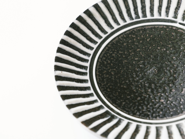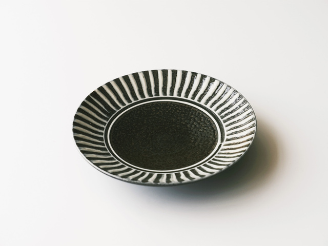 鬼丸豊喜窯|8寸皿(トビ/縁黒)小石原焼