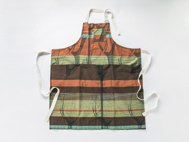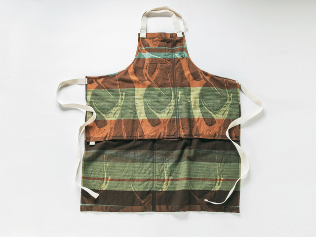 tamaki niimeの「まえか」は、割烹着のようでもあり、エプロンのようでもあり、でもそのどれにもおさまらない、まったく新しい一枚です。そして世界に一枚だけ。