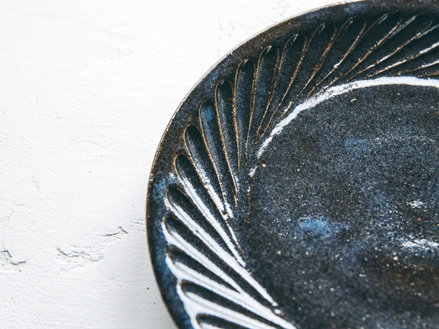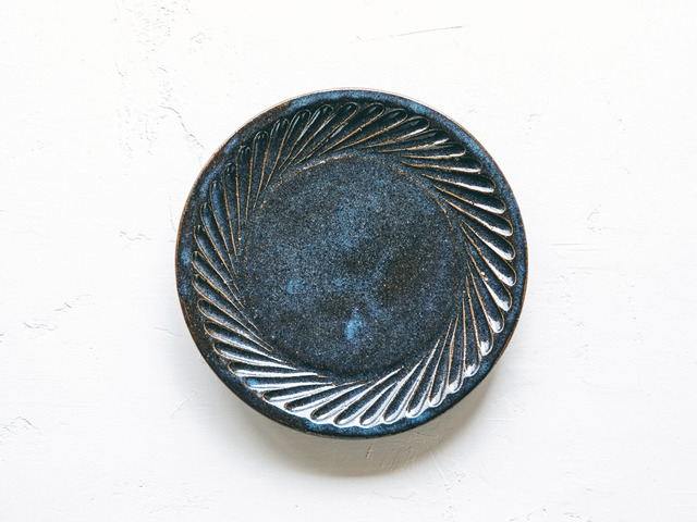 しのぎ 六寸皿 藍/小代焼 瑞穂窯・福田るい