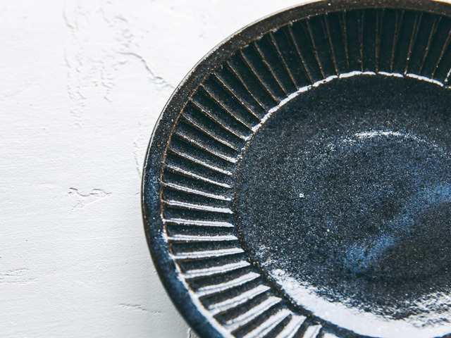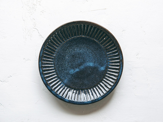 しのぎ 六寸皿 藍/小代焼 瑞穂窯・福田るい
