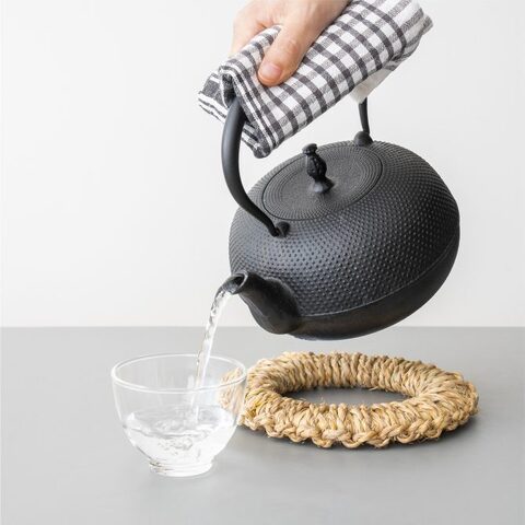 新潟県・佐渡島で熟練の職人さんがひとつひとつ手作りした「わら釜敷き」。鉄瓶には「小」サイズがおすすめ。