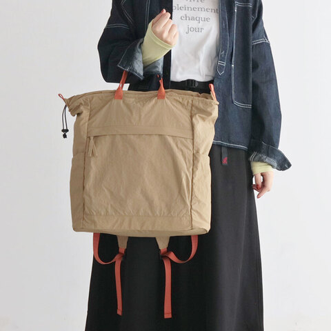 リュックとしてもトートバッグとしても楽しめるナイロンバッグ
