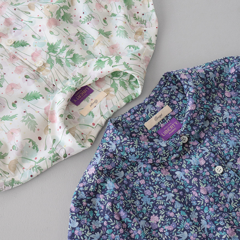 リバティ社を代表するタナローンを使用した「Crespi(クレスピ)」 のラウンドカラーシャツのご紹介です。