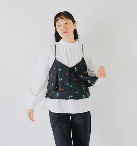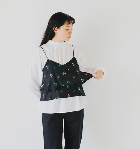 上品なとろみ感のあるブラックの生地がシックな印象なので、花柄ですが、大人にちょうどいい甘さ加減が嬉しいデザイン。年齢を問わないアイテムで、どの年代の方にも似合うビスチェです。