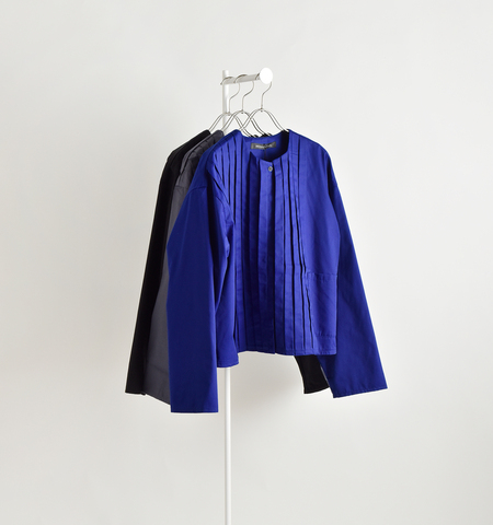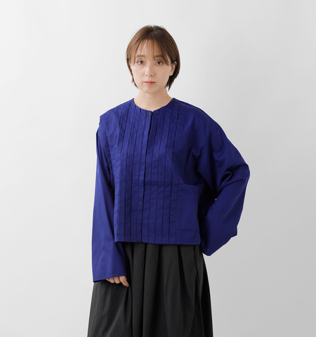 mizuiro ind|コットン スタンドシャツカラー ギャザー シャツ 3-230098-mn