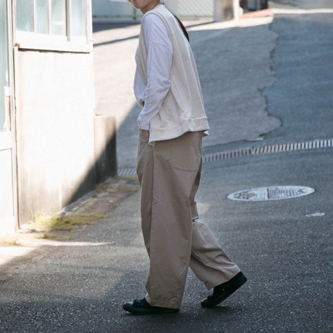 ヒップや太もも辺りに余裕を持たせながらも、裾を少しだけ絞ることにより、丸みのあるシルエットに仕上げています。