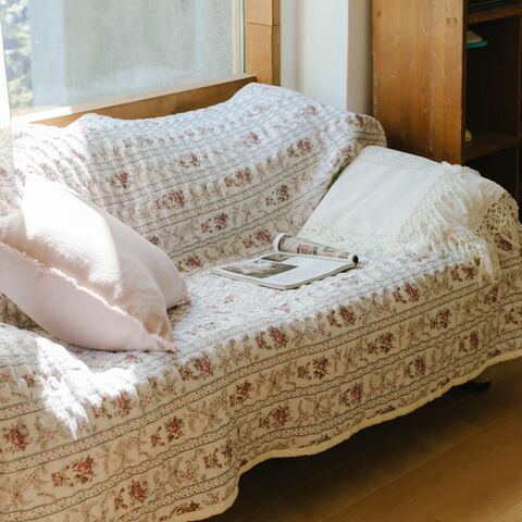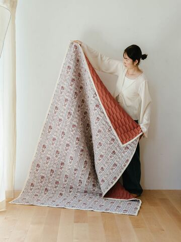 フランスのアンティークファブリックの雰囲気を、もっと気軽に楽しめたら。そんな思いから作った、オリジナルのキルティング・マルチカバーです。