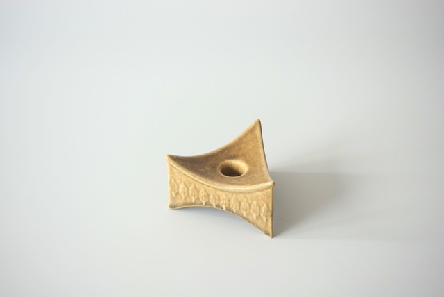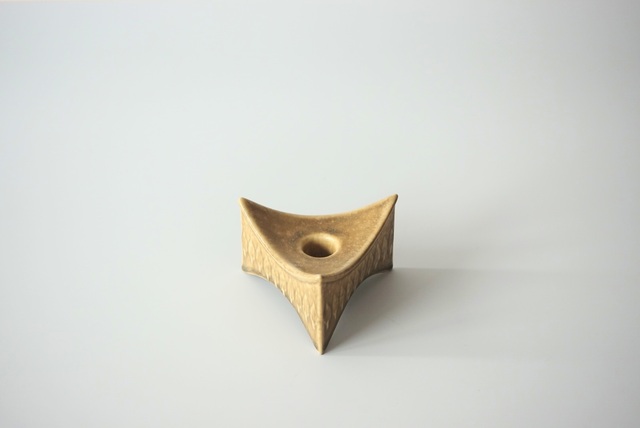その一つとして、今回ご紹介するのは 三角の形をベースに やわらかな有機的ラインからなるソリッドなキャンドルスタンド。