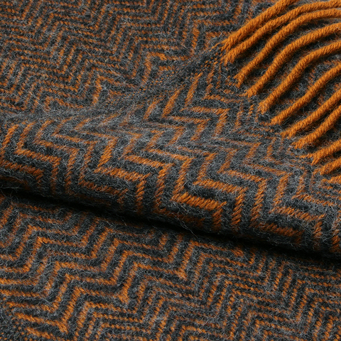 チャコールとダークキャメル、深みのある2色の糸を丁寧に織り上げた「ZIGZAG」。