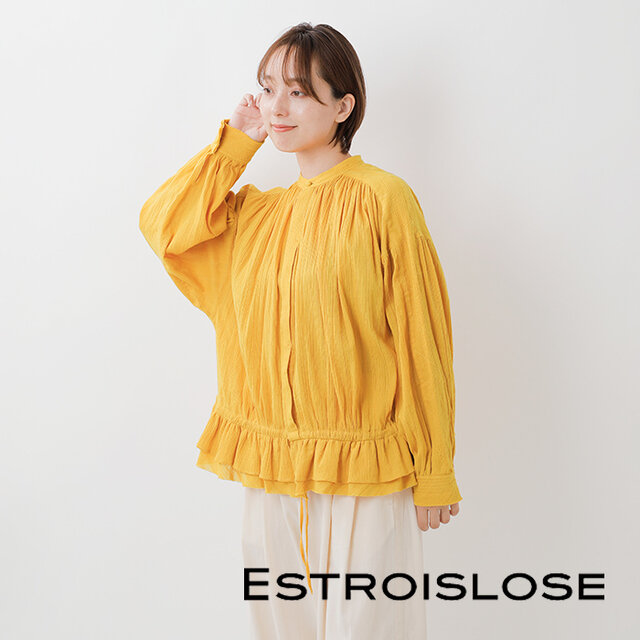 ESTROISLOSE(エストゥロワルーズ)より、コットン ストライプ 裾フリル ブラウスのご紹介です。