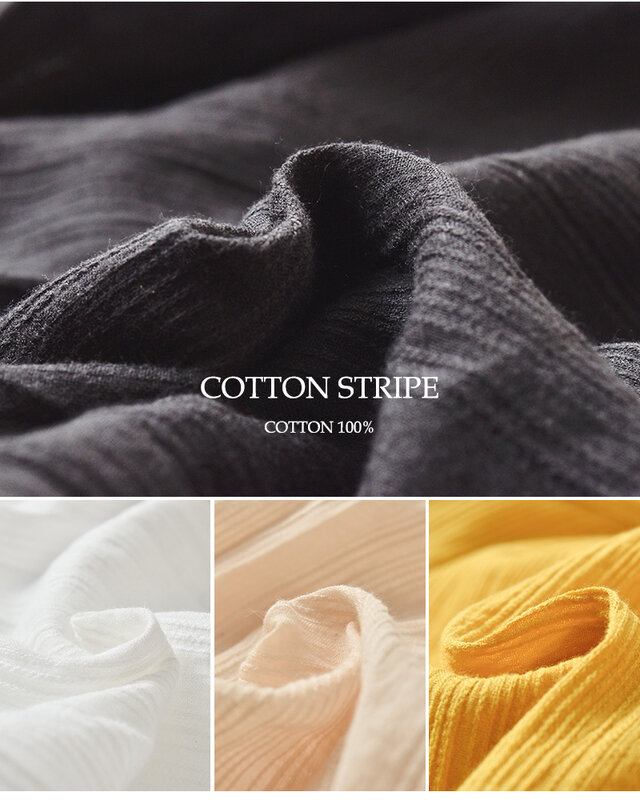 細やかな凹凸が生み出す立体感と、ストライプ柄の上品な表情が魅力のコットンドビーストライプ生地を使用。さらりとした肌触りと軽やかな着心地に加え、通気性にも優れています。ふわりと広がる軽やかな質感が、ボリューム感のあるシルエットを美しくキープします。