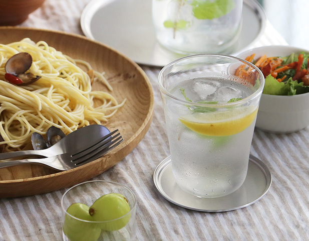 コースターの色合いと冷たい飲み物との相性が良く、涼しげな佇まいをぐんとあげてくれます。