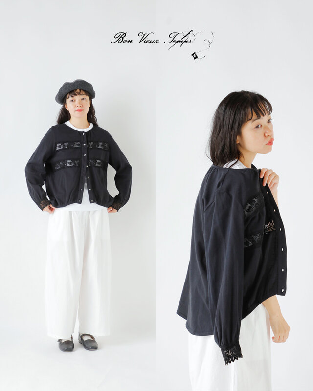 Bon Vieux Temps|コットン コーマ天竺 レース カーディガン 22809-ms