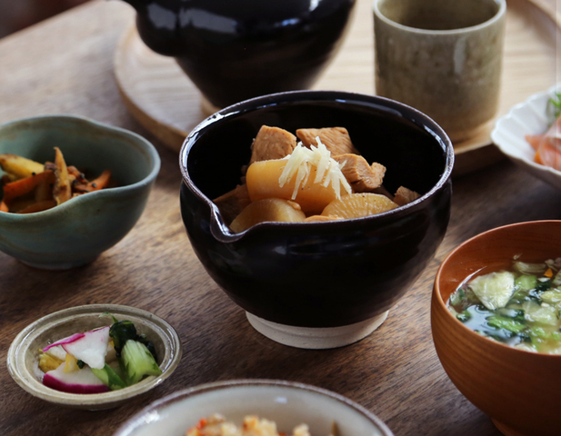 鍋物の出汁やすきやき鍋の割り下を注ぐ片口としてもお使いいただけますが、煮汁たっぷりの煮物や、豚の角煮、ポテトサラダなどの盛り鉢にもぴったり。