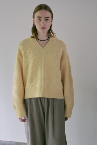 柔らかなエクストラファインメリノウールで編み立てたアランプルオーバー。遊び心のあるアラン模様がモダンな印象をプラスします。重くならず軽やかに見えるアランニットは、ワイドパンツやスカートなどどんなボトムスともバランスよく合わせられる一着です。