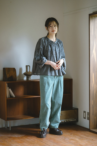 インドの起毛コットンボイル生地に、細やかな刺繍をたっぷりと施した華やかなブラウス。柔らかな風合いの生地に繊細な刺繍が映え、存在感がありながらも上品な雰囲気をまといます。