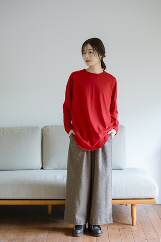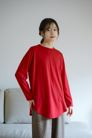 30番手のナチュラルな風合いを持つ天竺素材を使用した、大人にちょうどいいロング丈カットソー。柔らかく肌に馴染み、季節を問わず快適に着られる万能な一枚です。