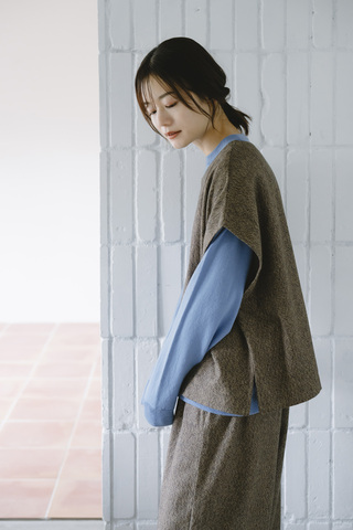 国内だから再現できる奥行感◎三つ杢ツイル素材ワイドベスト