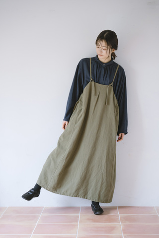 コットンにリネンをブレンドした、ほんのり起毛感のある柔らかな素材を使用したキャミジャンスカ。