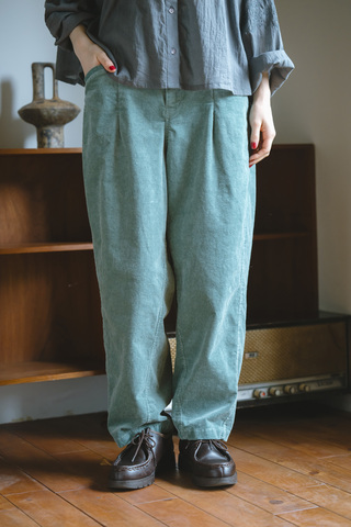 軽やかで柔らかな 12W(ウェル)のコーデュロイ生地 を使用し、穿きはじめから肌に馴染む心地よさが魅力です。