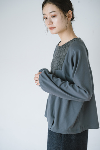 立体的なパイルジャガードを贅沢に使用し、前後で異素材を切り替えたデザインプルオーバー。