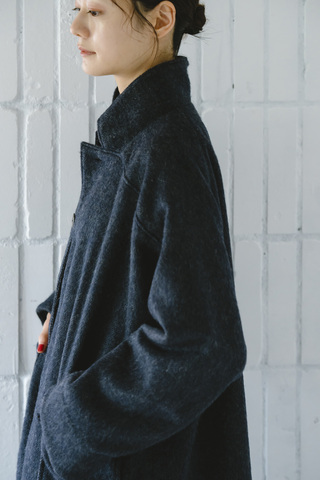 首元をすっきりと美しく見せるスタンドネックが印象的な、軽やかで暖かいエコウール素材のコート。柔らかく軽い素材感ながら保温性もあり、寒い季節でもストレスなく着られる一枚です。