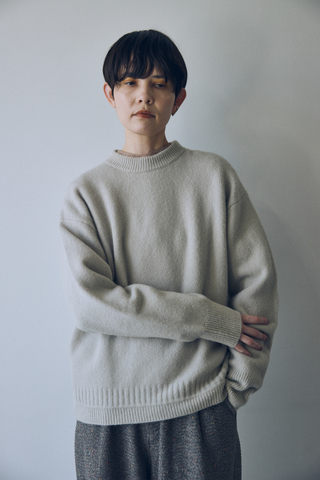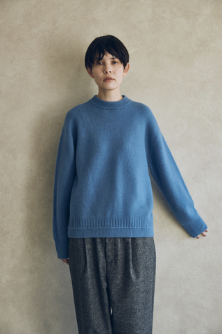 ウールを中心にヤク等を混紡し、軽さとあたたかさを兼ね備えた糸を使ったシンプルなニットプルオーバーです。