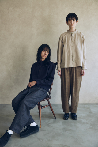 天然素材の持つ魅⼒と向き合い、⻑く愛して育てていける服をかたちにしています。