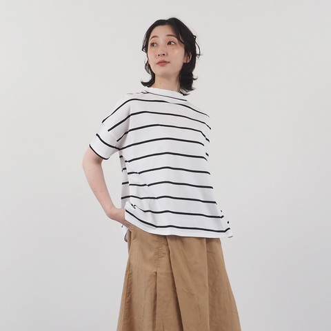 ゆったりとしたシルエットが魅力の60/2ハイゲージ天竺ボーダー ワイドTです。ベーシックなボーダー柄をワイドシルエットに落とし込み、一枚で着ても存在感のあるスタイルが完成します。