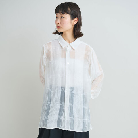 シアーな素材感と二重織りのおくゆきを感じる特別感ある程良いゆるさのレギュラーシャツ。
