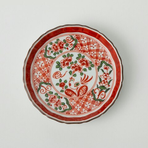 「桔梗渕4.5寸皿」は、伝統的なおめでたいモチーフを色鮮やかに描いた器。縁のデザインや縁までしっかり入った絵柄が美しく、料理を盛り付けても華やかです。程よい大きさで取り皿にちょうどよく、ハレの日にふさわしい雰囲気作りに重宝しますよ。
