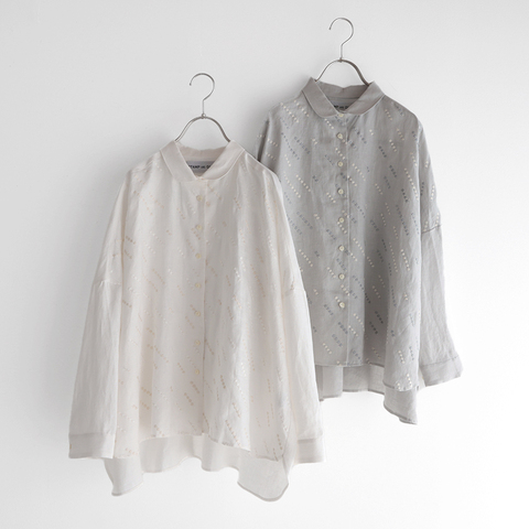 STAMP AND DIARY|Runo刺繍 60リネン ラウンドカラービッグシャツ