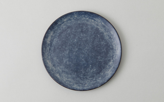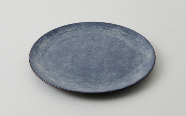 表裏とも、一閑張です。和紙を貼り、両面に黒漆と白漆を塗り重ねています。この黒漆と白漆の合わせが、この色と質感を出していて、一見土や金属にも見えます。硬く見えて柔らかさもあり、重く見えてそこまで重量感はなく、素材が組み合わさってできる不思議な質感です。このような製法のため、1点ずつ色味の仕上がりは異なります。