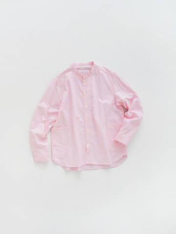 ファーマーシャツは、スタンドカラーと身頃に付いている2つのポケットがポイントです。