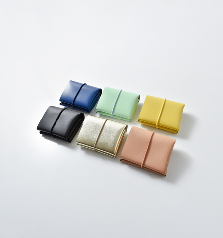 一枚革を折り込んで仕立てた2つ折り財布。手になじむコンパクトなサイズ感ながら、紙幣・コイン・カードをそれぞれ分けて収納可能。紙幣は折らずにそのまま出し入れでき、使い勝手の良さも魅力です。開閉はゴムバンドで留める仕様のため、中身が落ちにくく安心。さらにゴムバンドは駐車券やカードを挟んだり、鍵を取り付けたりと、工夫次第で便利に活用できます。上質なレザーの質感と豊富なカラーバリエーションが、日常のコーディネートにアクセントを添えるアイテムです。